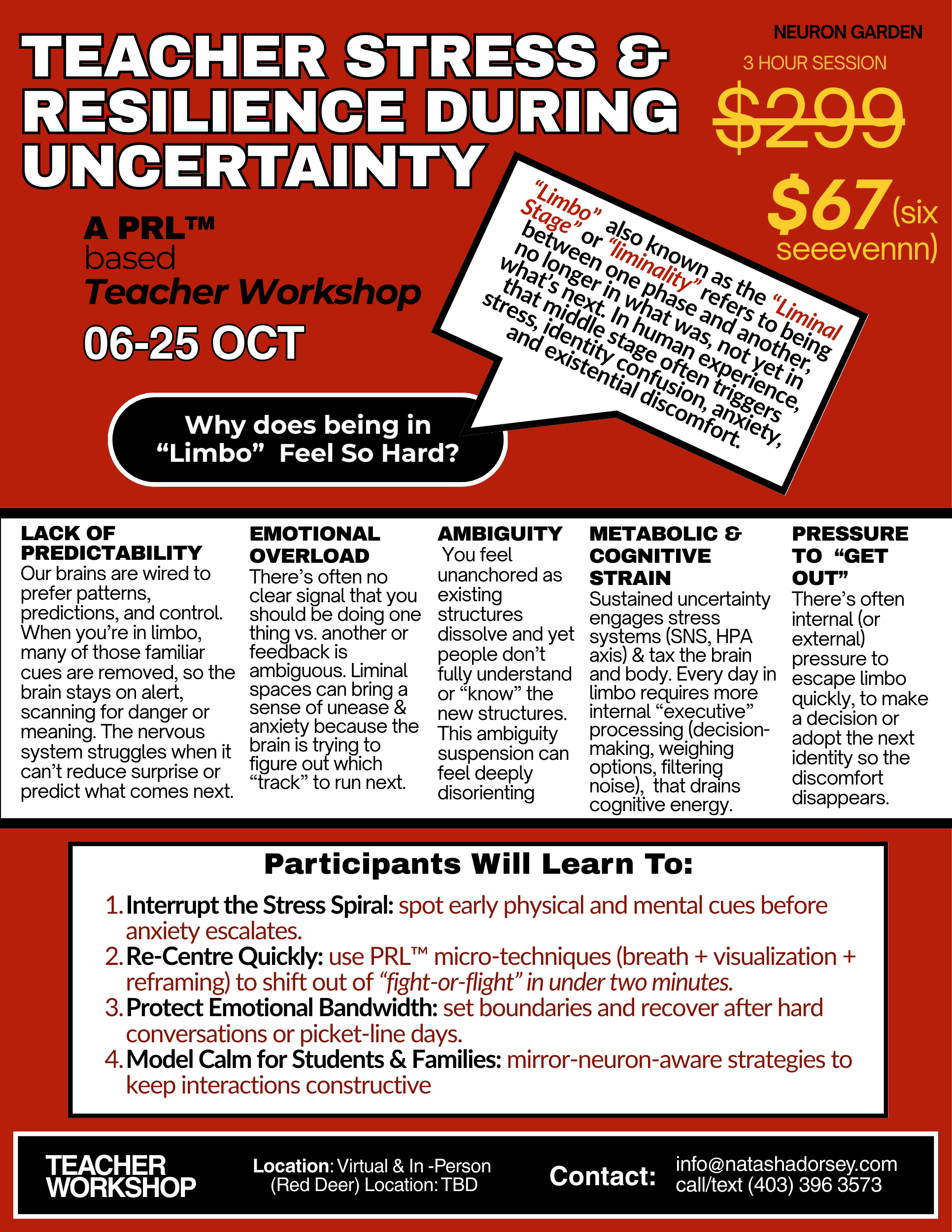 “Limbo” also known as the “Liminal Stage” or “liminality” refers to being between one phase and another, no longer in what was, not yet in what’s next. In human experience, that middle stage often triggers stress, identity confusion, anxiety, and existential discomfort.
