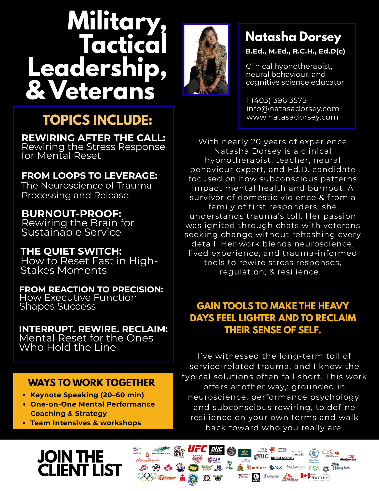 The Perceptual Reframing Loop™ (PRL) was built for high-stakes operators like you. Tools you can deploy under pressure, and long after the mission ends.